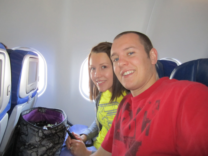 Just boarded! This picture is taken EXACTLY ONE YEAR from our first date. Crazy that only one year later we're on a plane moving to Hawaii together!